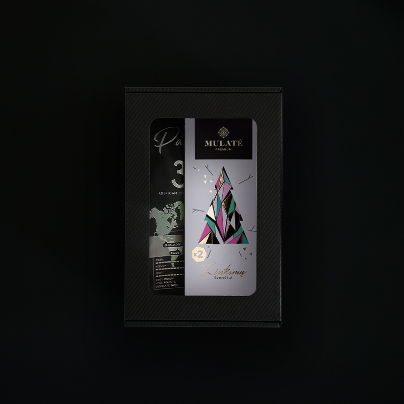 Rinkinys: kava ir šventinis šokoladų rinkinys – atvirukas